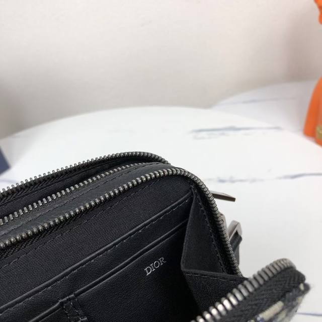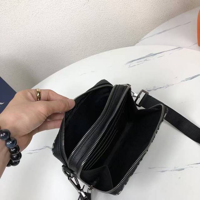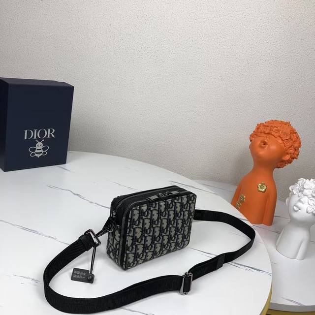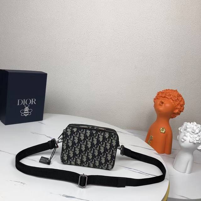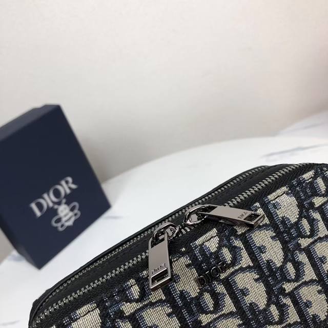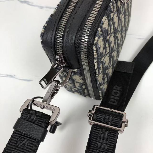 是1967年Dior House设计中首次展示的用Dior Oblique图案装饰的化妆包 由米黄色和黑色相间的提花材料制成 其特点是正面口袋 顶部双向拉链闭塞 三个卡槽 可调节长度的黑色Christian Dior尼龙提花肩带由两个铂金菲尼西黄铜卡扣完成 Dior标志性压花装饰简约而充裕 内部设有一个贴片口袋 确保日常随身物品安全保管 是能给各种外型增添优雅感的摩登单品