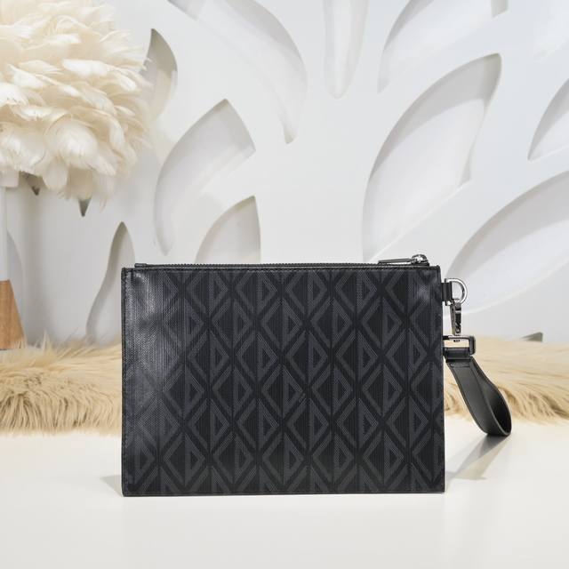Dior-迪奥专柜最新款男士手拿包官网同步 原单品质 这款手拿包是Dior的一款主打单品 采用迪奥黑Cd Diamond 图案帆布精心制作 手感超赞 正面饰以“Dior”标志提升格调 设有一个可收纳手机的宽大拉链隔层 搭配可拆卸的牛皮革手腕带 可手提或放入手袋中 款式新颖 独特魅力 百搭休闲实用 出街帅帅哒尺寸:26.5 17.5 1Cm