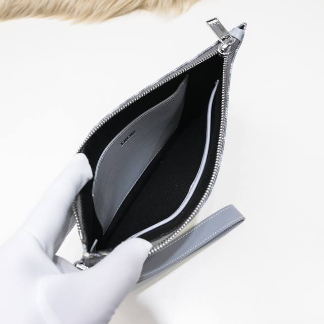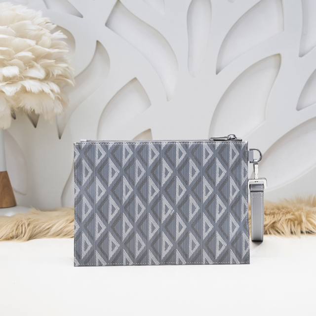 Dior-迪奥专柜最新款男士手拿包官网同步 原单品质 这款手拿包是Dior的一款主打单品 采用迪奥灰Cd Diamond 图案帆布精心制作 手感超赞 正面饰以“Dior”标志提升格调 设有一个可收纳手机的宽大拉链隔层 搭配可拆卸的牛皮革手腕带 可手提或放入手袋中 款式新颖 独特魅力 百搭休闲实用 出街帅帅哒尺寸:26.5 17.5 1Cm