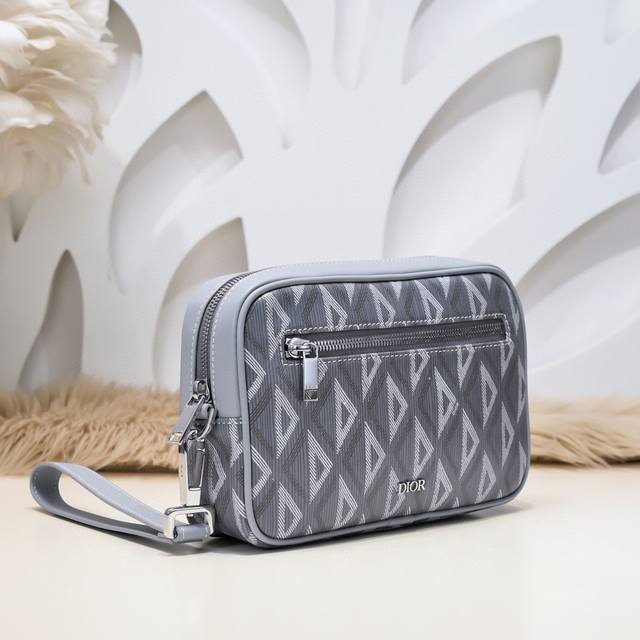 Dior-迪奥专柜最新款男士手拿包官网同步 原单品质 这款Dior Lingot 手包是本季新品 别具一格 结构分明 采用迪奥灰Cd Diamond 图案帆布精心制作 宽大的拉链隔层饰以正面拉链口袋 搭配可拆卸的皮革带 款式新颖 独特魅力 百搭休闲实用 出街帅帅哒尺寸:24 15.5 5Cm