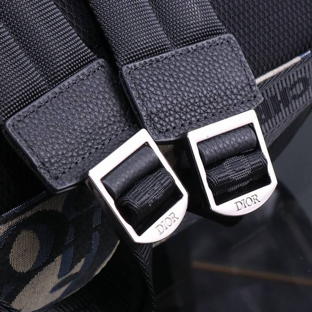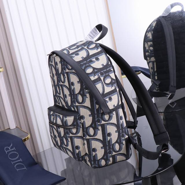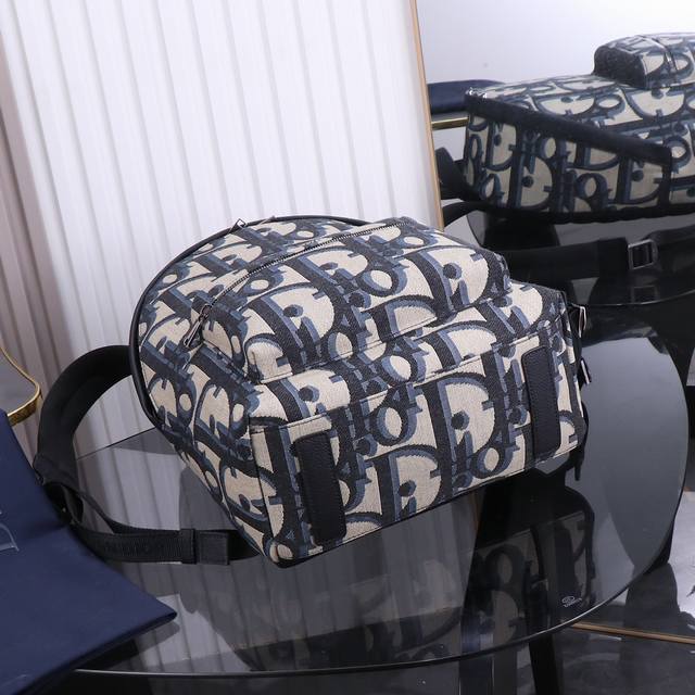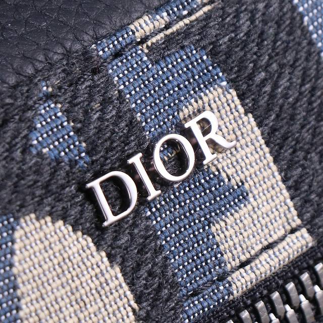 Dior-迪奥专柜最新款男士单肩包官网同步 原单品质 蓝布款D9666 这款Dior Lingot 22手袋是本季新品 采用米色和黑色Oblique 印花面料精
