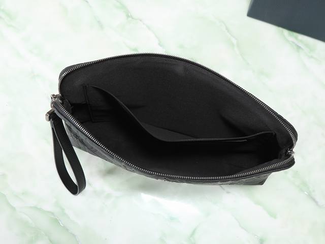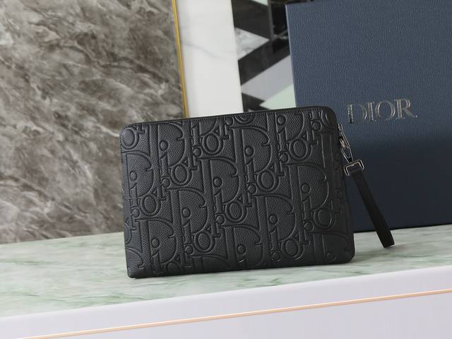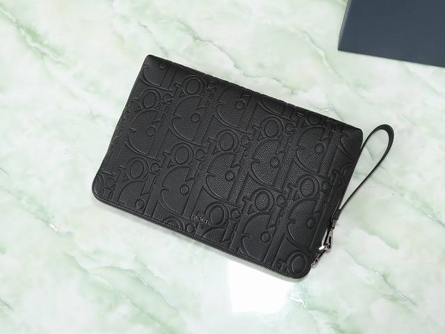 这款 A4 拉链手拿包是Dior的主打单品。采用Dior Gravity 印花效果皮革精心制作,以压花工艺将经典图案精致呈现于黑色牛皮革之上,正面饰以Dior标志,充分彰显Dior 工坊的精湛工艺。宽敞的拉链隔层设有三个卡槽和两个插袋。搭配可拆卸的粒面牛皮革腕带,可手提或放入手袋中。 型号:2Esca421Llg_H00N 尺寸:35X 24X4.5厘米 长X高X宽 可容纳一台13英寸笔记本电脑、一台平板电脑和A4文件 主体:牛皮革 里料:科技面料,棉,牛皮革拉链主隔层2个内部插袋 3个光滑牛皮革卡槽可拆
