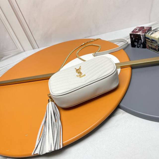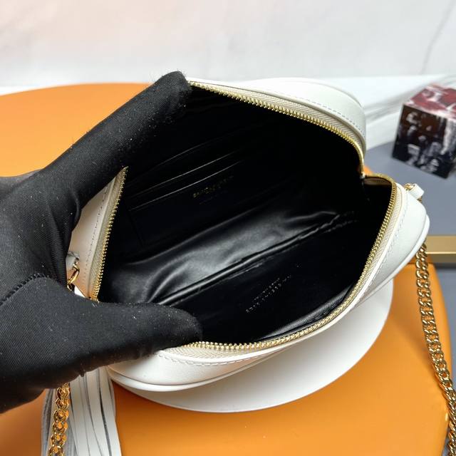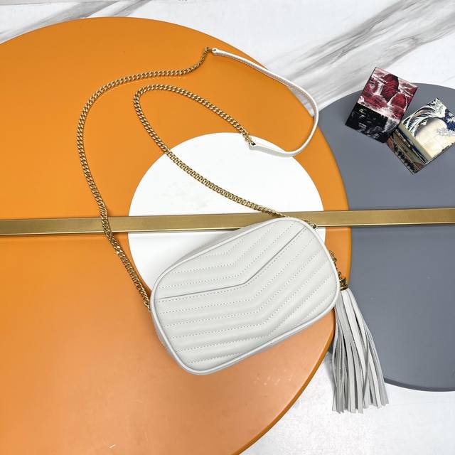 / 奶白 金扣+平纹lou Mini Bag顶级进口牛皮相机包,香港购入zp开模打版,做到一模一样!非常精致!搭配时尚流苏挂饰!里外全皮,包内有卡槽位!非常实用大气
