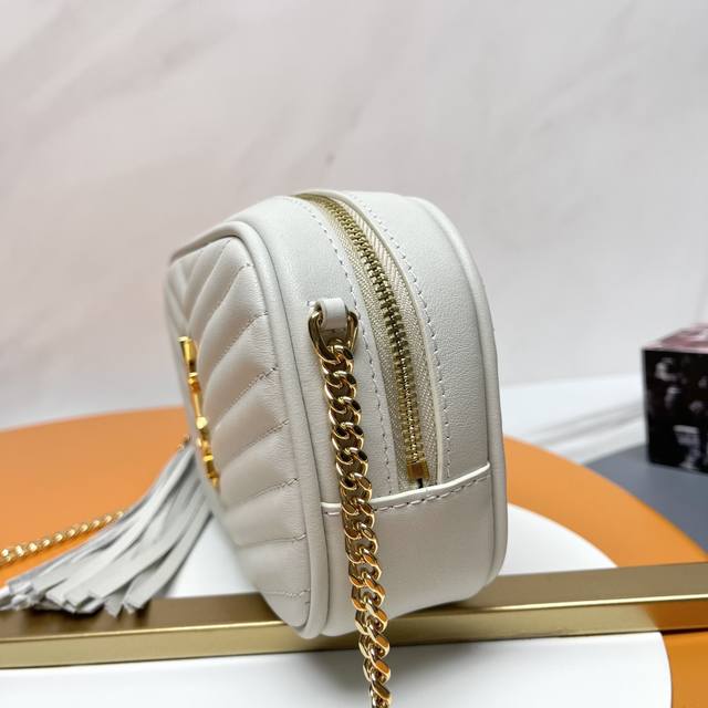 奶白 金扣+平纹lou Mini Bag顶级进口牛皮相机包,香港购入zp开模打版,做到一模一样!非常精致!搭配时尚流苏挂饰!里外全皮,包内有卡槽位!非常实用大气