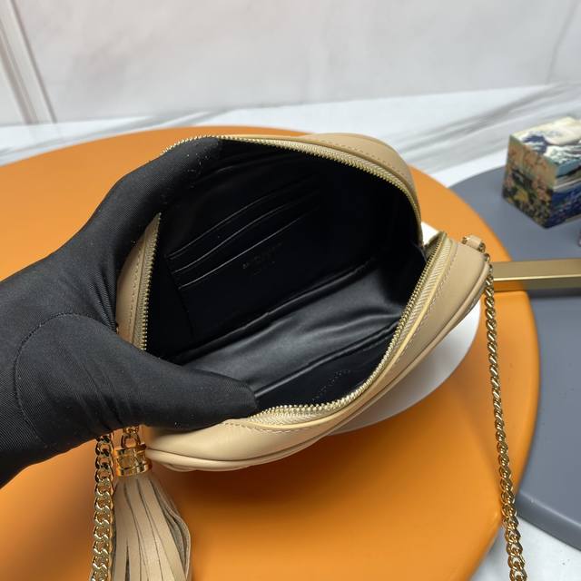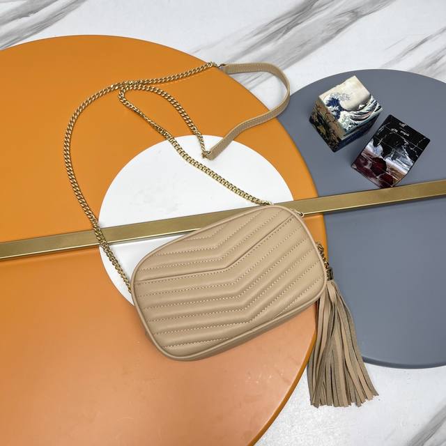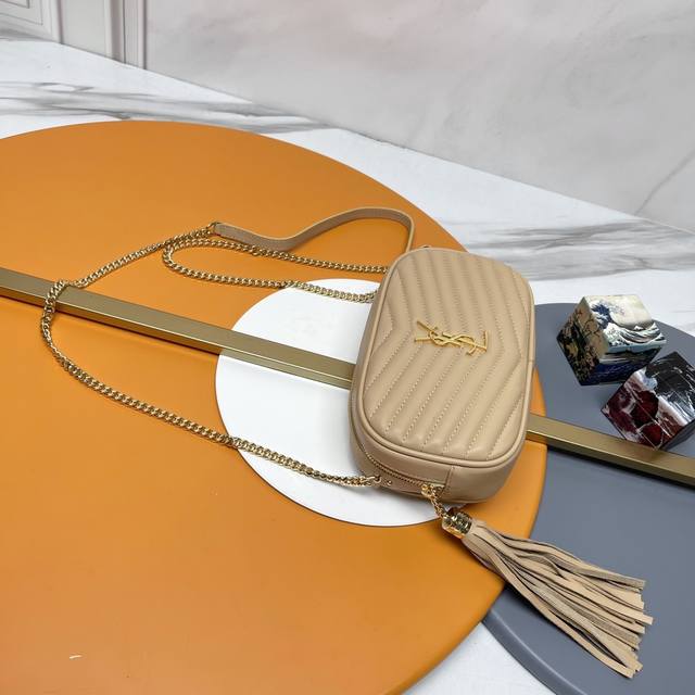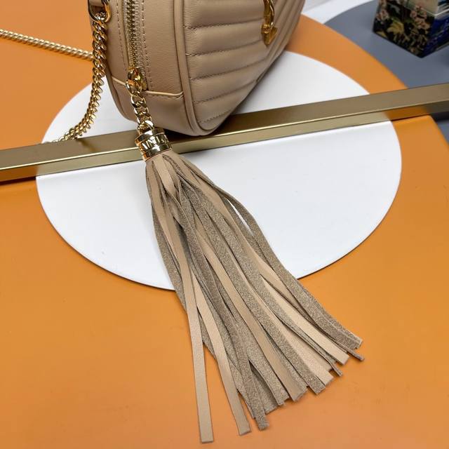 / 杏色 金扣+平纹lou Mini Bag顶级进口牛皮相机包,香港购入zp开模打版,做到一模一样!非常精致!搭配时尚流苏挂饰!里外全皮,包内有卡槽位!非常实用大气
