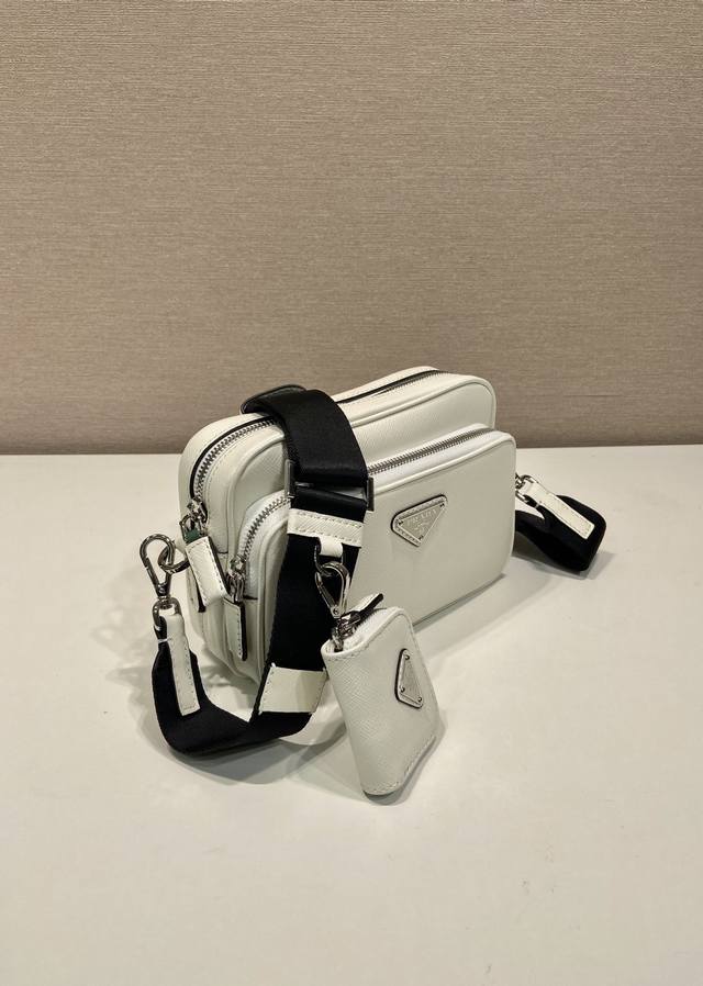 这款单肩包采用saffiano皮革打造,简约的线条彰显醒目的格调。标志性的saffiano皮革材质是华美的代名词和意大利传统皮具制造工艺的身份象征。配有可拆卸的皮革小袋和涂珐琅三角标,可拆卸调节的尼龙长肩带,更加简约又大气,赶紧入手吧