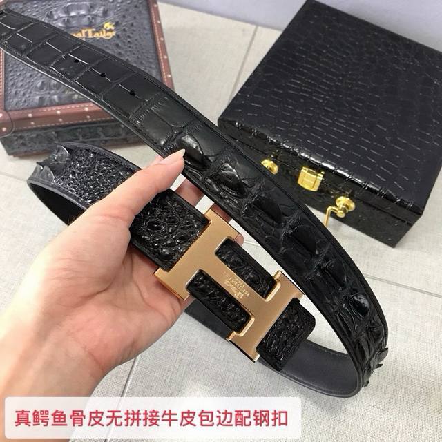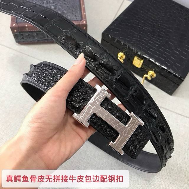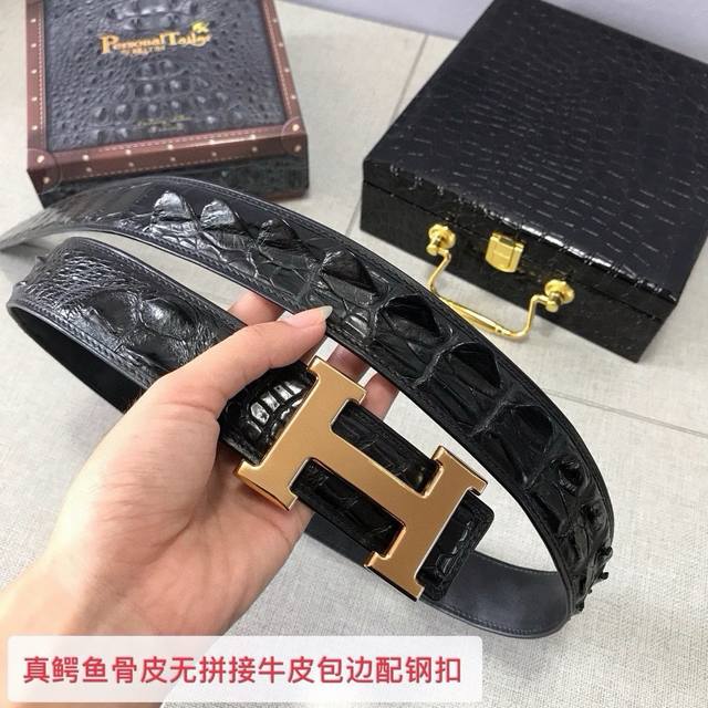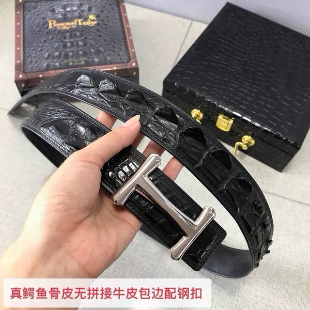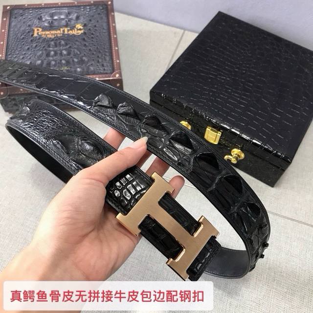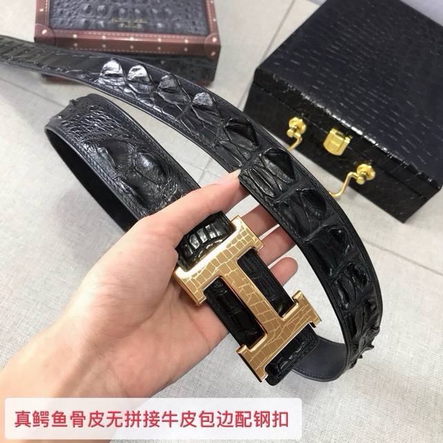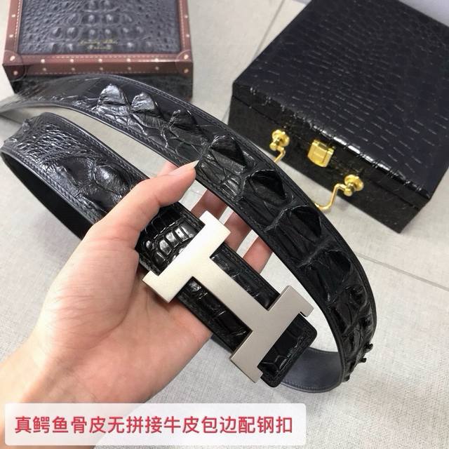 / 真鳄鱼骨皮无拼接皮配4.0Cm钢扣