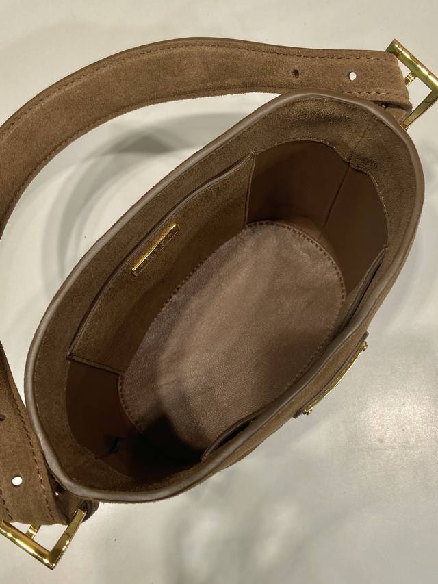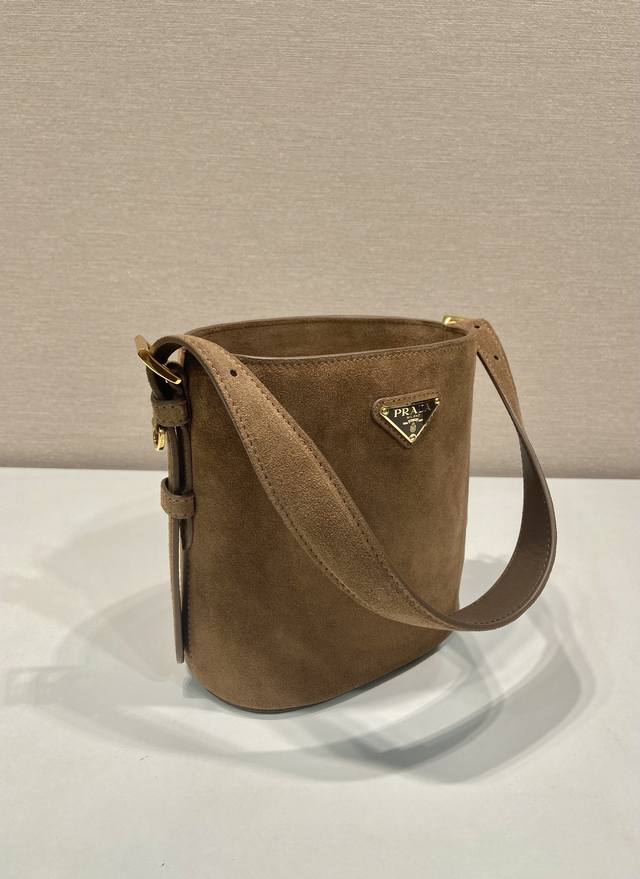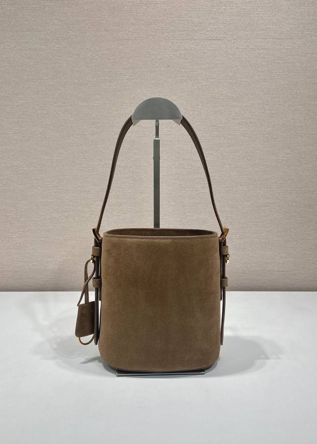 / 新款水桶包1Be078A绒皮小号 這款靈活易搭的水桶袋設計極簡,以柔軟的麂皮製作。肩带可调节,内配进口羊皮,答量空间大,上身效果又时尚潮流,冬天必备,值得拥有