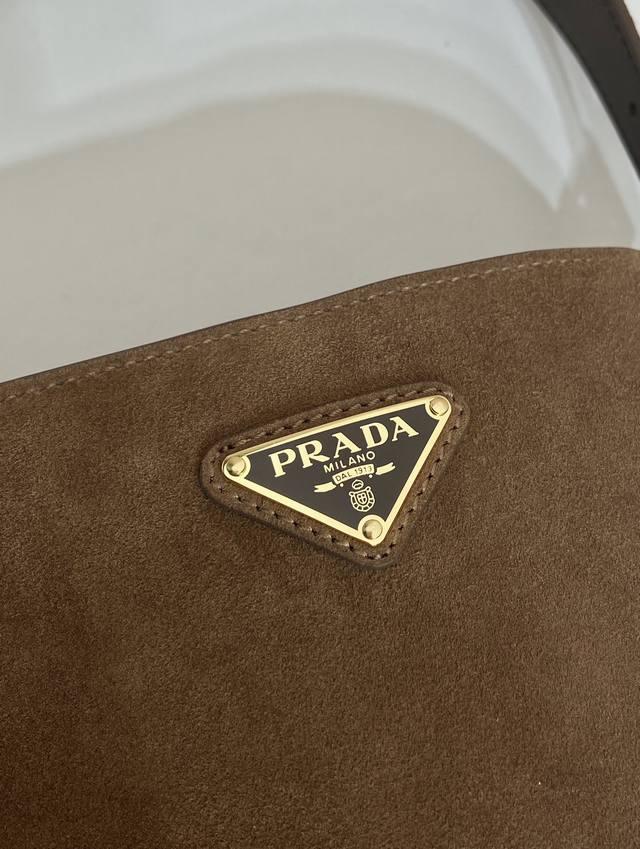 新款水桶包1Be078A绒皮小号 這款靈活易搭的水桶袋設計極簡,以柔軟的麂皮製作。肩带可调节,内配进口羊皮,答量空间大,上身效果又时尚潮流,冬天必备,值得拥有