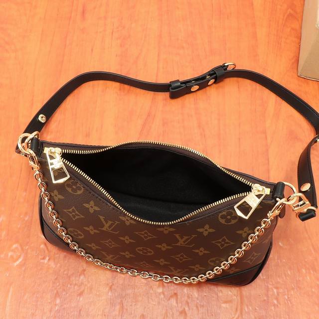 仿原单 Boulogne 手袋取材经典 Monogram 帆布,配有双拉链和可容纳 Iphone 12 Pro 手机的宽敞内贴袋。可调节肩带实现斜挎或肩背,取下即可化身小号链条包或手拿包。