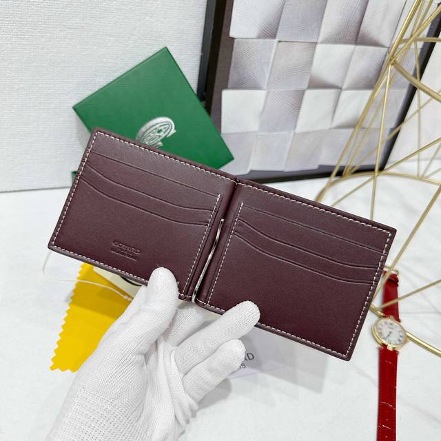 戈雅Saint-Thomas 钱夹设有多个卡袋以及一个中部铰链式钞票夹,可容纳钞票。它的尺寸既适合放入包中,也可放入夹克或裤子口袋中。