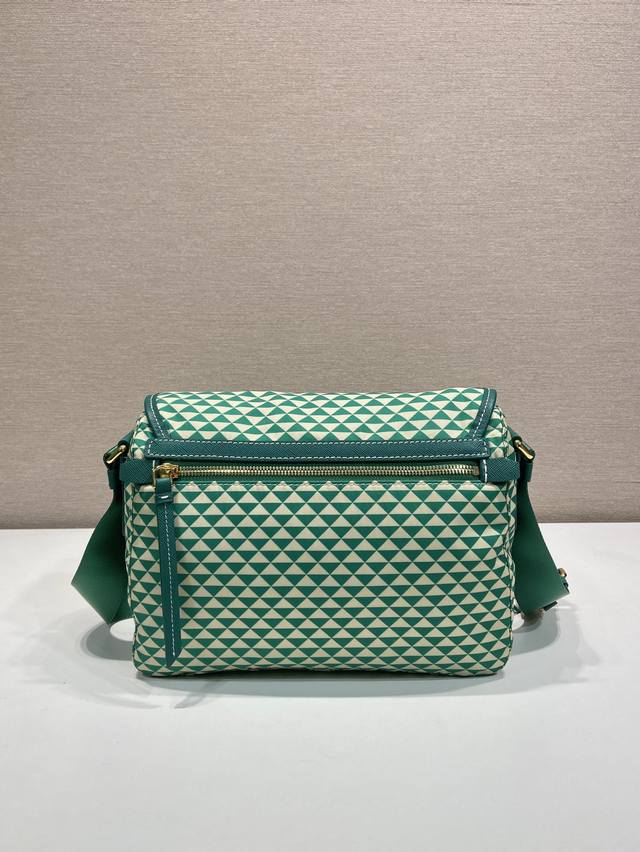 新款Symbole1Bd383邮差包 这款邮差包采用织物印花尼龙面料,配十字纹牛皮。颜色吸睛夺目,包包上的印花由经典三角形组成,很耐看哟,空间大。真太太美了,美