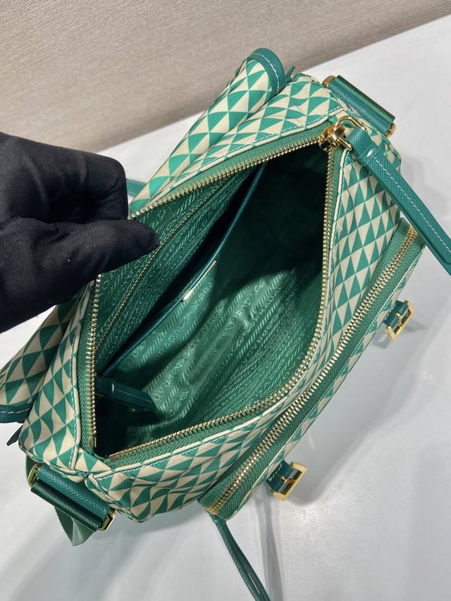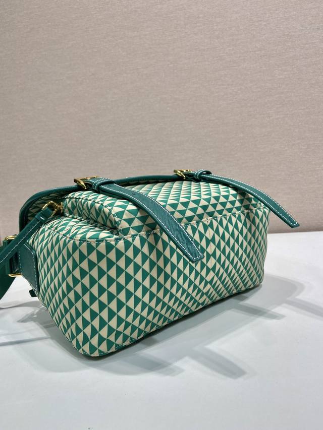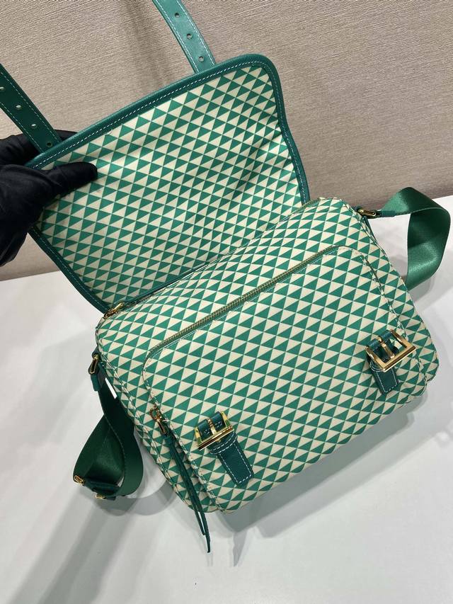 这款邮差包采用织物印花尼龙面料,配十字纹牛皮。颜色吸睛夺目,包包上的印花由经典三角形组成,很耐看哟,空间大。真太太美了,美女们,赶紧入手吧,春夏季节必备