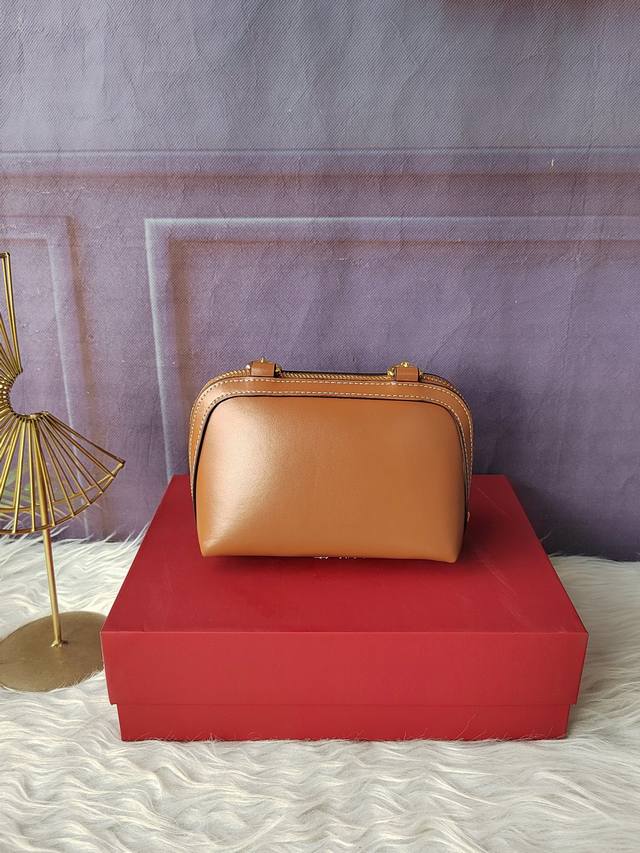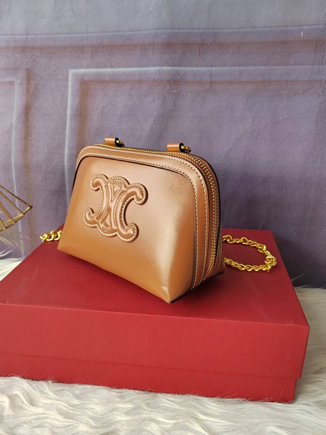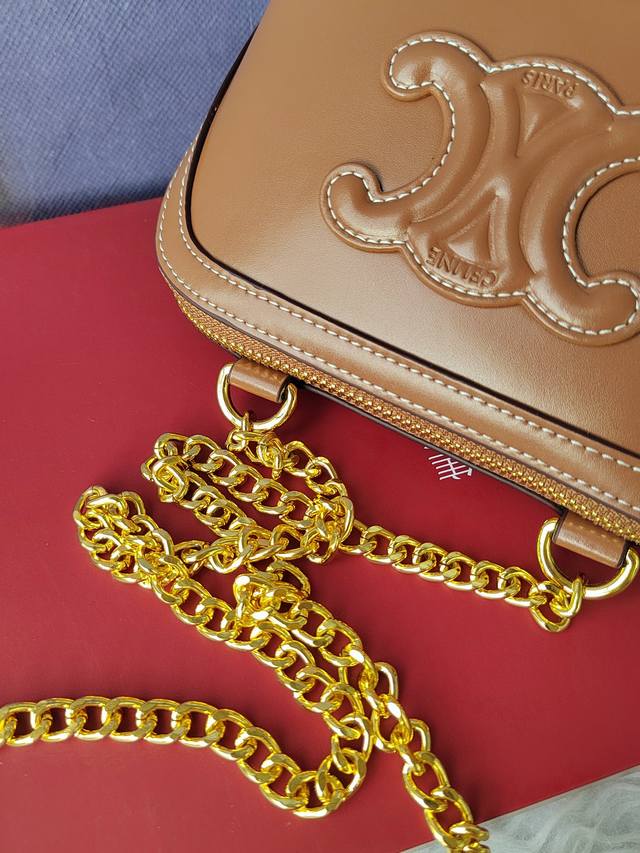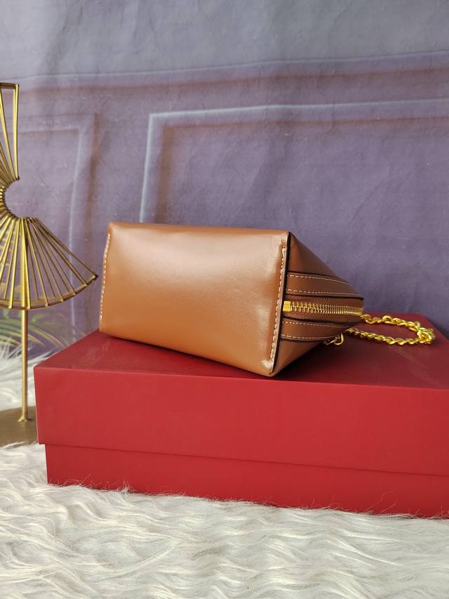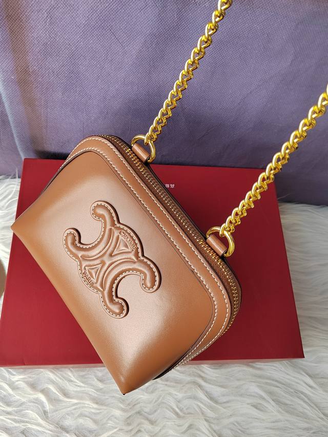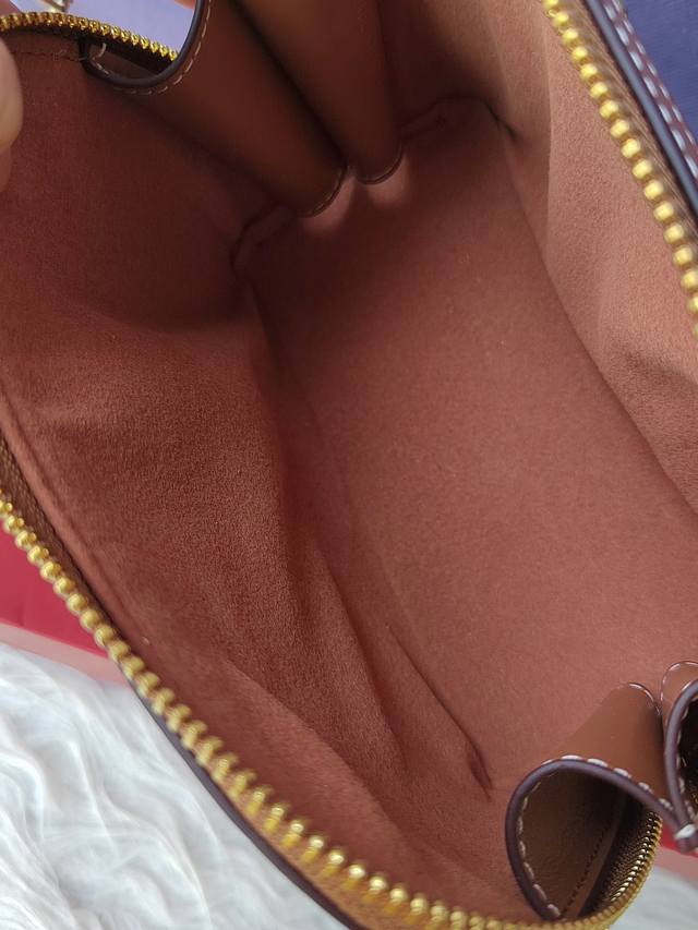 款号C10E382棕色涂层人造革,织物籿里金色金属件,斜挎和肩背,拉链开合。尺寸16Cm-11Cm 肩带长55Cm