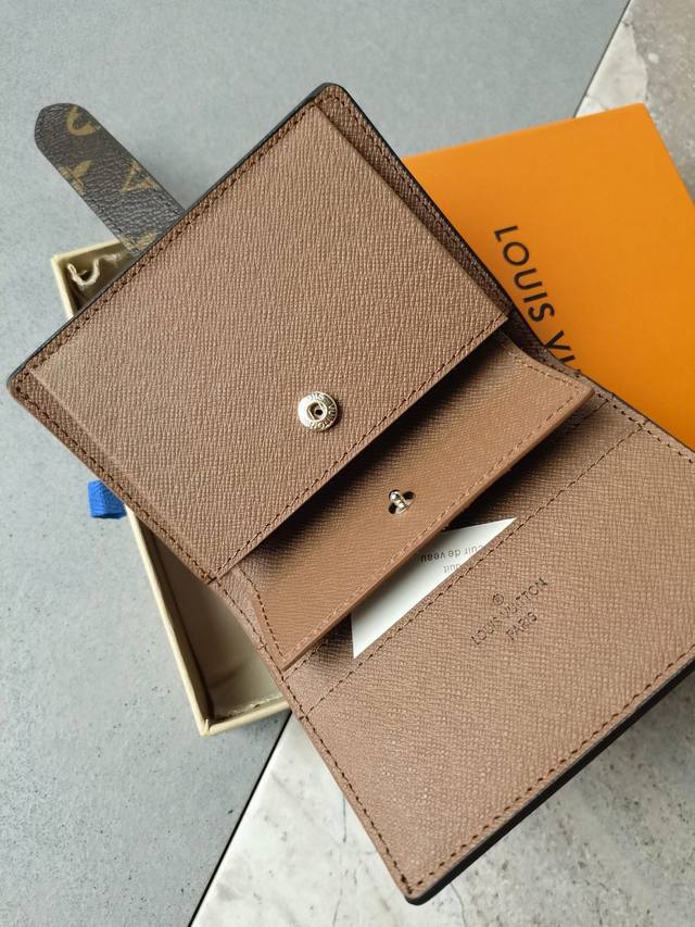 颜色 黑 棕 老花尺寸 11X8.5型号 M12408 老花本款在表现极简主义设计的同时 赞美Maison传统工艺的新作 portfoillelowy Compact 在光滑的小牛皮上用奢华的牛皮加了衬里 装饰了古色古香的精致金色挂锁 锁 除了零钱和纸币用的多个口袋外 还有3个卡槽的内部装修也很有魅力