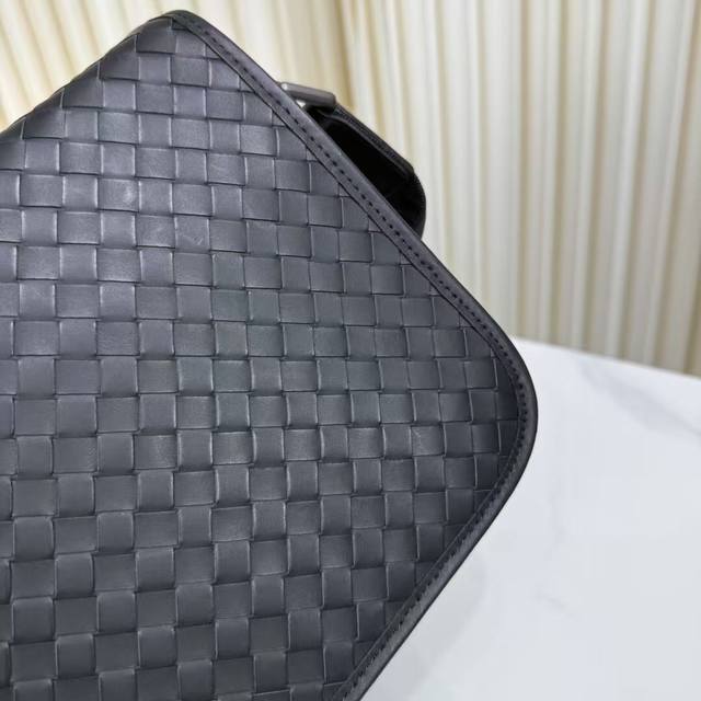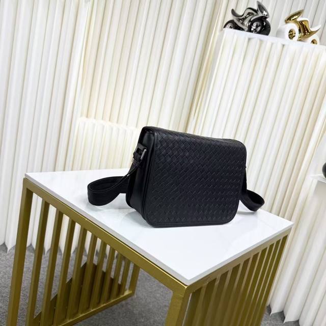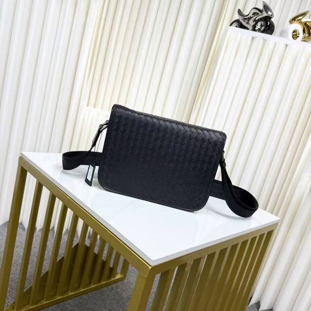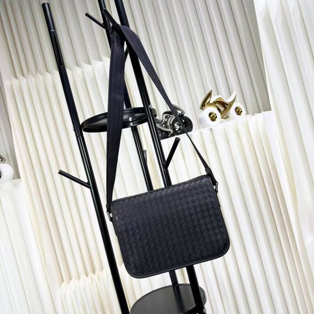 Bv编织邮差包2025爆款单品,此款邮差包采用纯手工编织制作而成柔软的进口打蜡小牛皮滚边使方形廓形别具魅力,低调实用皮质越用越油亮等特点型号:836L#,颜色:黑色,规格:25-20-6Cm。