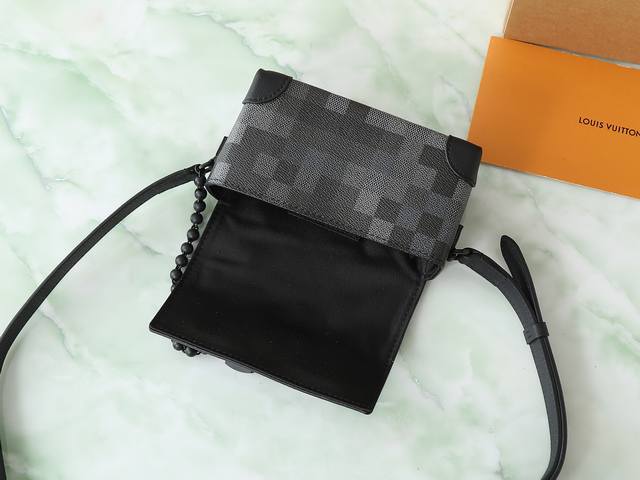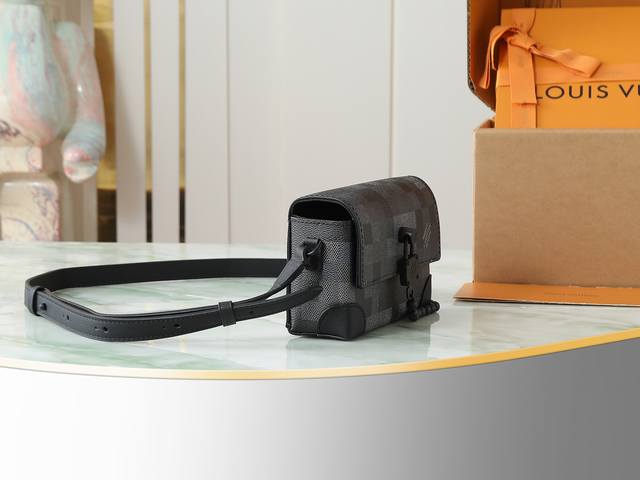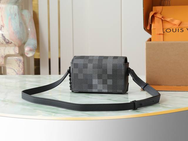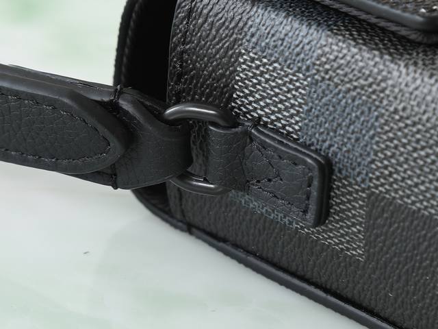 顶级原单 独家实拍 M14923 本款Steamer迷你手袋以Damoflage Black涂层帆布呈现Pharrell Williams的俊逸考究设计。像素化Damier Graphite图案营造摩登观感。方形锁扣衔接工致珠链,可调节肩带实现肩背和斜挎。尺寸:18X11X6.5厘米 长度X高X宽