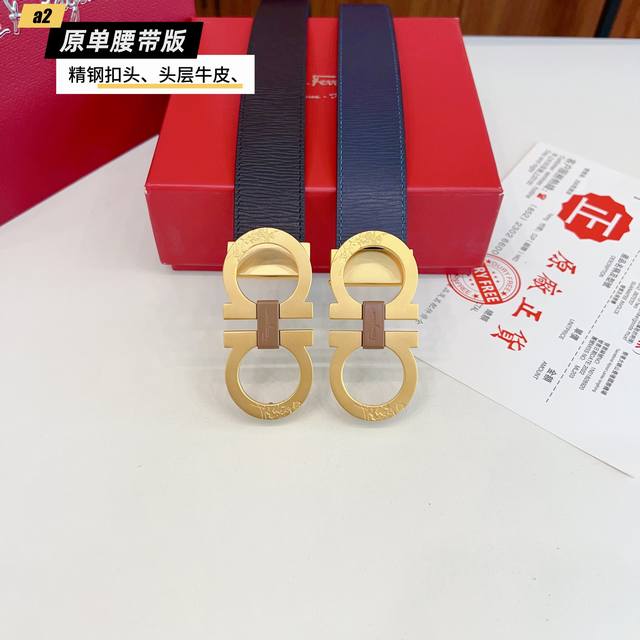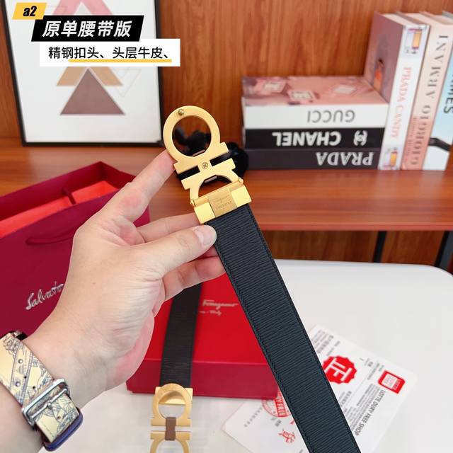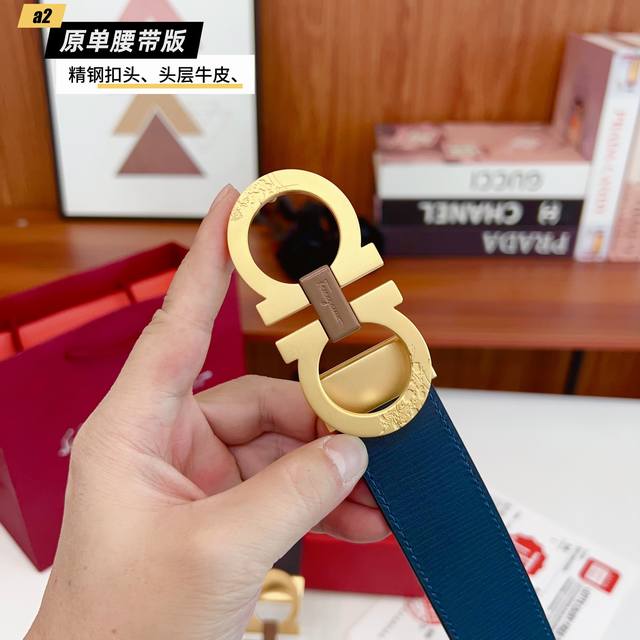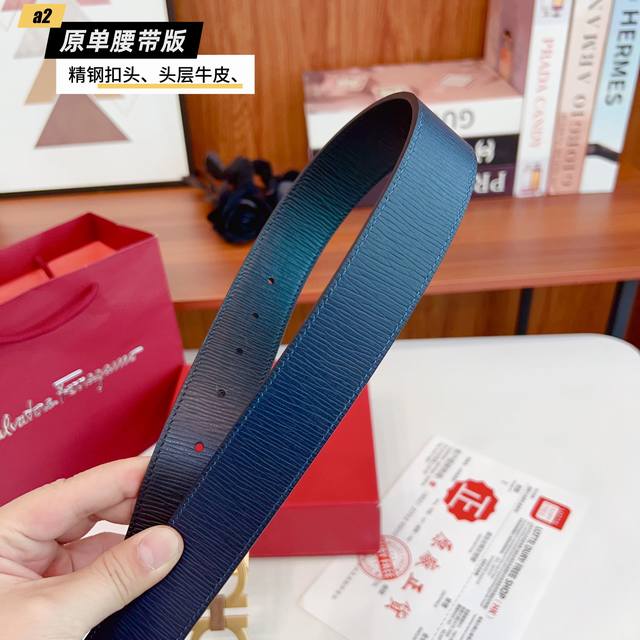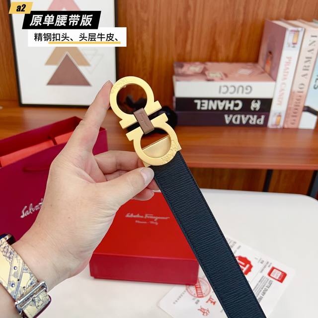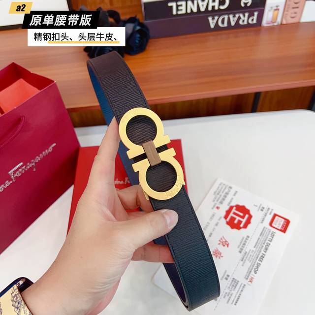 / Ferrago 菲拉F 雙面头层牛皮 全新效果精钢材质搭扣 寬度35毫米 該皮帶可調節 且能根據需要裁剪達到修身效果