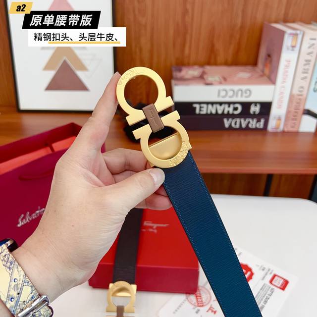 Ferrago 菲拉F 雙面头层牛皮 全新效果精钢材质搭扣 寬度35毫米 該皮帶可調節 且能根據需要裁剪達到修身效果