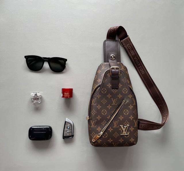 V家款 33103-1 断货王 新款V家胸包中古款,采用进口头层牛皮、手感非常柔软、高品质五金,特别有档次,设计简单,帅气、耐看、喜欢的赶紧下单吧!尺寸33 18 8、颜色: 老花