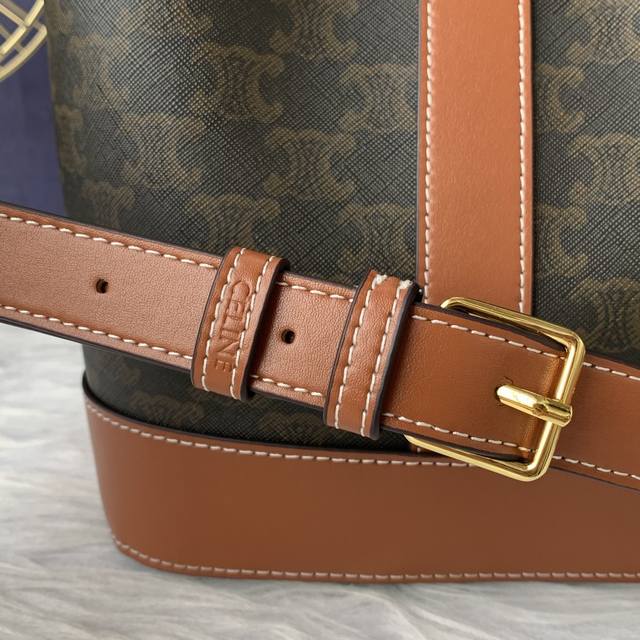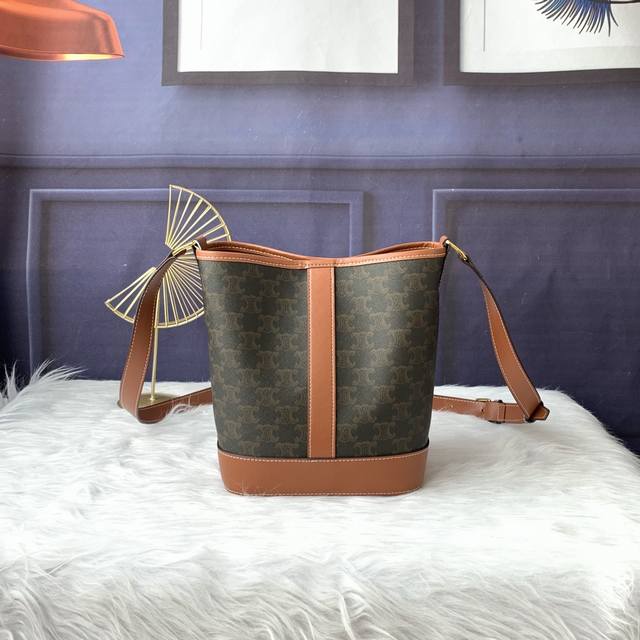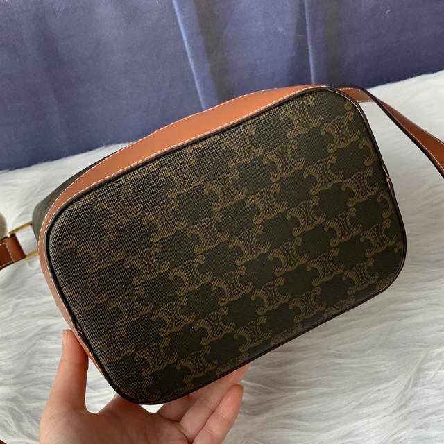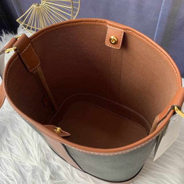 款号C191442小号标志印花桶包,人造革 牛皮革,内阁织物,斜挎和肩带,按扣开合可调节肩带长 50Cm 尺寸:30Cmx22Cmx13Cm