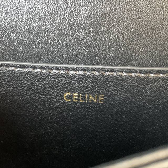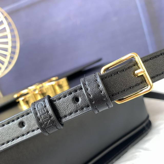 款号C188411黑色Triomphe大号手袋,附1条可调节及可拆卸皮革肩带和一个黄铜塔扣。金色金属件斜挎和肩背黄铜锁扣。尺寸22.5Cmx16.5Cmx7.5Cm