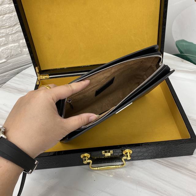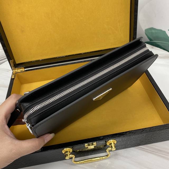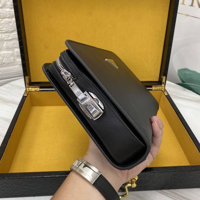 顶级原单醉新款手拿包到货。进口牛皮。配专里布。做工看细节,每一处都无比讲究,精致细腻。市场最牛货,一直坚持高端精品出击,手快者赚,下手晚了别说没提醒哦,实体店 最佳货源颜色: 黑色 尺寸:26-17-5型号 5253-5