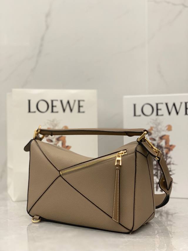 爆款沙色Puzzle 采用进口珠地小牛皮运用了独特剪裁 搭配平纹拼接而成 其独特荔枝皮纹路 让包身整体感觉增添别样的韵味 Size :中号30*12*19Cm