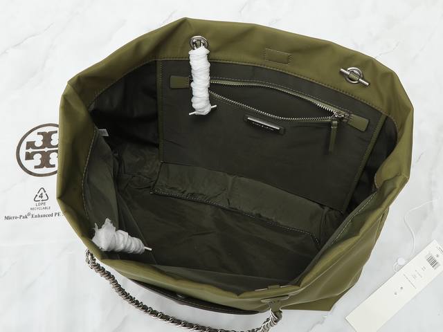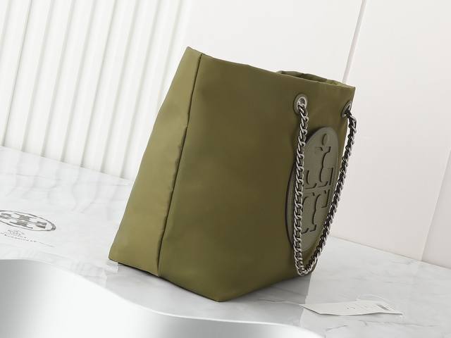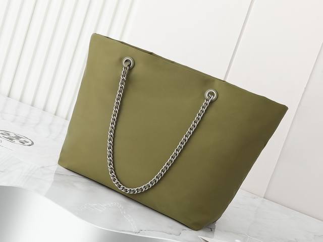原单质量 尼龙布系列,新品注意细节 汤丽柏琦 Ella链条托特包柔软解构,以轻巧的再生尼龙材质与编织链条肩带而独具辨识。宽阔的内部空间可容纳日常所需,包括笔记本电脑,无论是日常或旅途使用,皆为理想之选。尺寸29Cm*32Cm*16Cm 搭配吊牌贴纸,仿为标,胶袋,品牌考贝纸