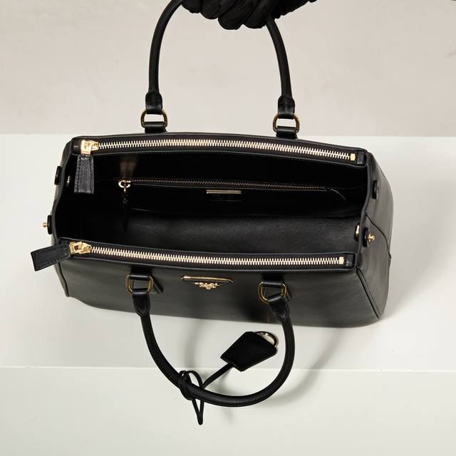 特级原厂 型号:1Ba274 黑色 平纹皮新款杀手包,原单品质 Saffiano皮革 皮革双提手 可拆卸可调式皮革肩带 镀金配件 可拆卸皮革钥匙环,三角形皮革上带有金属刻字徽标 侧面按扣开合 两个拉链外袋 三个内袋,其中包括一个拉链袋 软羊皮衬里,皮革脚钉代工码165,尺寸:32×22.5×13.5Cm! DDD