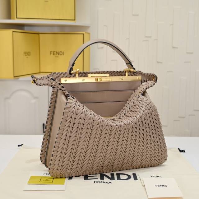 型号3317上新啦 DDD 新款出货 ,现货首发 DDD Iconic peekaboo Iseeu大号手袋,手工皮编织。两侧饰有标志性扭锁。从外头可看见同色系柔软皮衬里,两个隔层由硬质隔板隔开,配有可拆卸内部口袋和金色金属件。配有手柄和可调节可拆卸式肩带,可手提或肩挎。尺寸:33Cm DDD