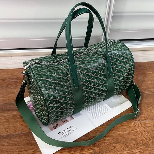 Goyard Barrel 运动旅行袋 40公分的尺寸更适合日常使用,可以当健身包、短途小旅行的完美伙伴。双拉链设计使用更方便。侧面多了一个手柄增加手提功能。包身整体非常柔软轻盈大容量空间。侧边设有扣环,可以自行搭配中号背带进行肩背原版皮,原版五金,尺40*23*23Cm DDD