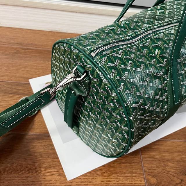 Goyard Barrel 运动旅行袋 40公分的尺寸更适合日常使用,可以当健身包、短途小旅行的完美伙伴。双拉链设计使用更方便。侧面多了一个手柄增加手提功能。包