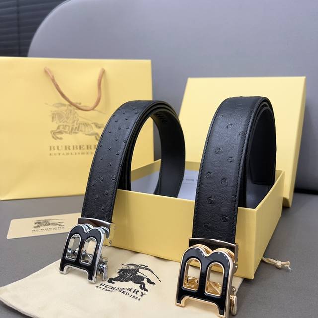 / Burberry 巴宝莉 牛皮腰带 男士经典款皮带 时装搭配必备款 优质合金扣头 采用原厂牛皮带身 机械打孔 高品质全套包装 礼盒 礼袋 小票