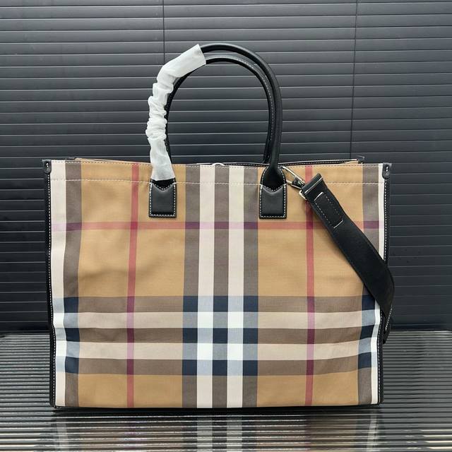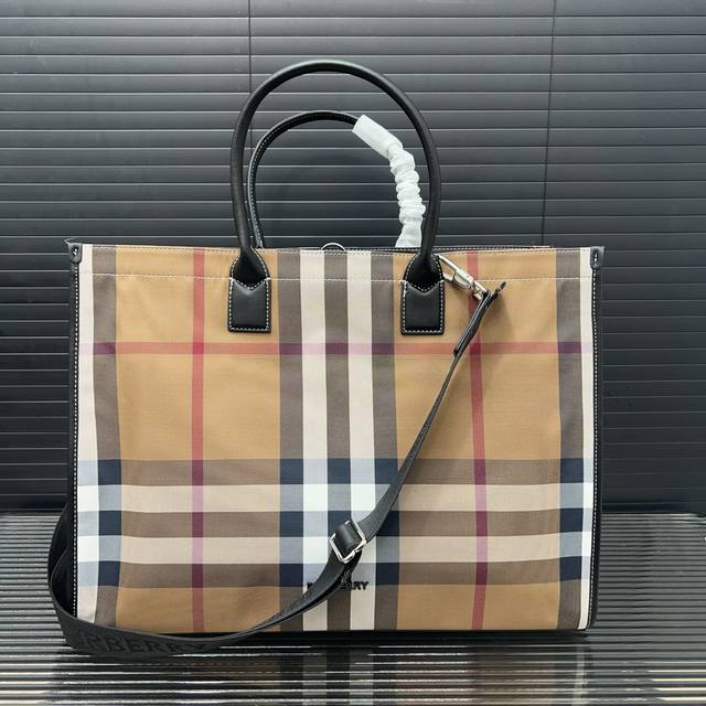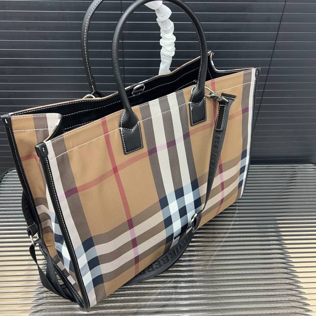 / Burberry 巴宝莉 经典格子帆布托特包 男女通用手提包 采用精湛镶嵌细工 经典百搭 实物拍摄 原厂原版面料 配送防尘袋 43 X 33 Cm。