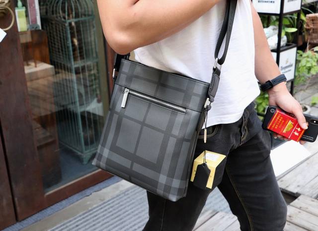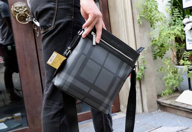 / 批 巴宝莉 型号33093黑色 Burberry独家新款 斜挎包 尺寸 24X27X6Cm 高端品质 原单正品 独特的品质时尚的设计精致的手工构制潮男必备专柜货
