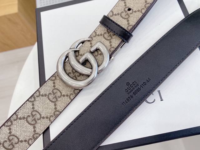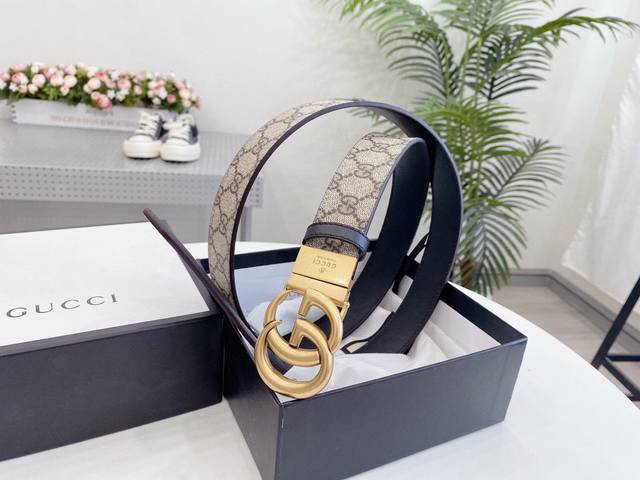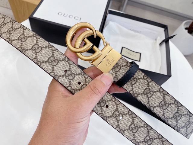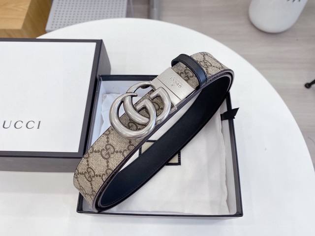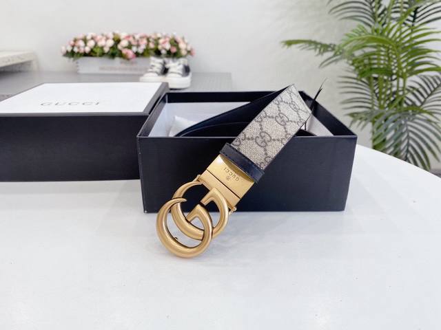 古奇 宽度3.8Cm 精美扣头 不褪色 小牛皮 高级 上身郊果棒 商务休闲两用双面可用 头层牛皮底