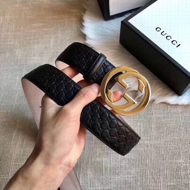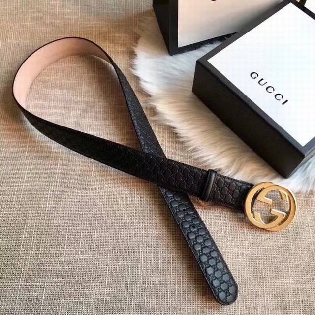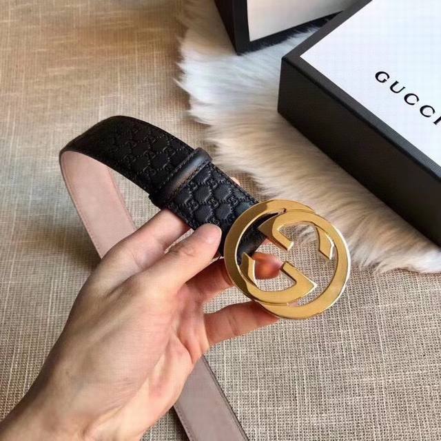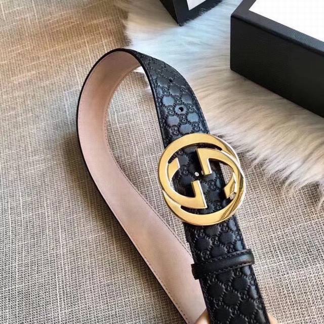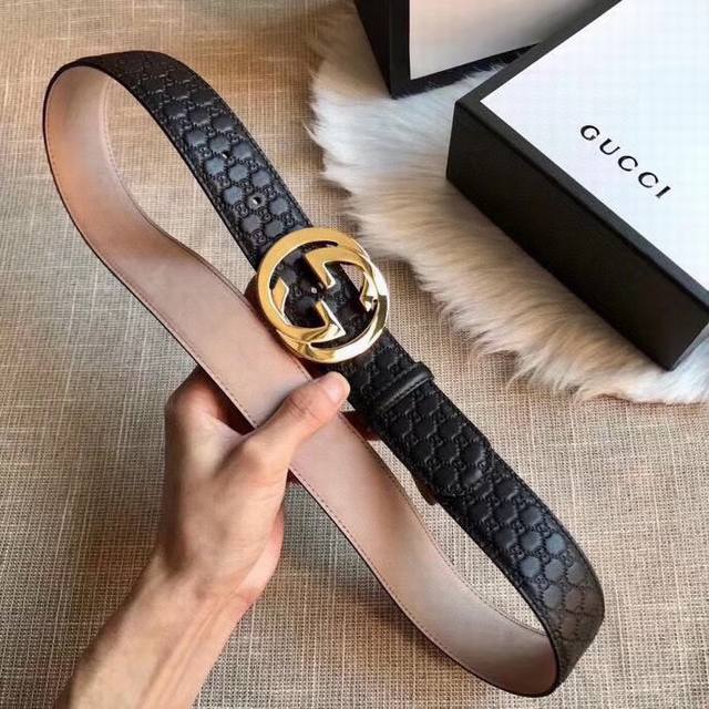 Gucci 古奇 时尚原单腰带,进口原版小牛皮压花,搭配双面菱形扣头,真空电镀,永不掉色,宽度3.8Cm