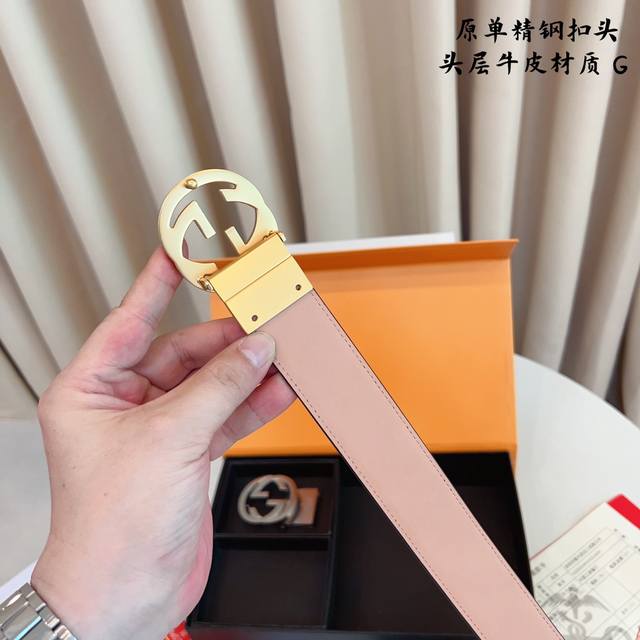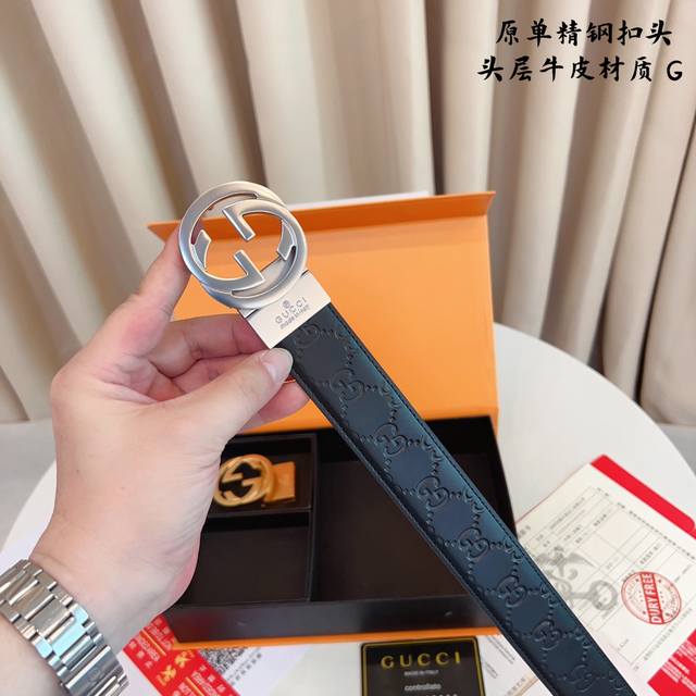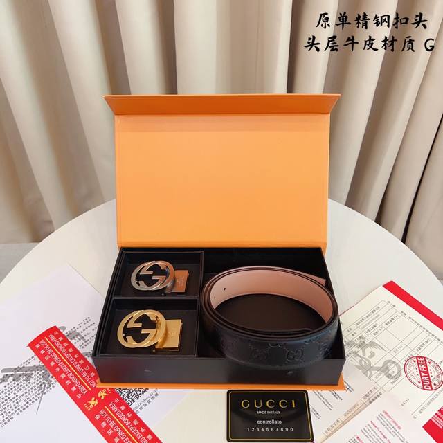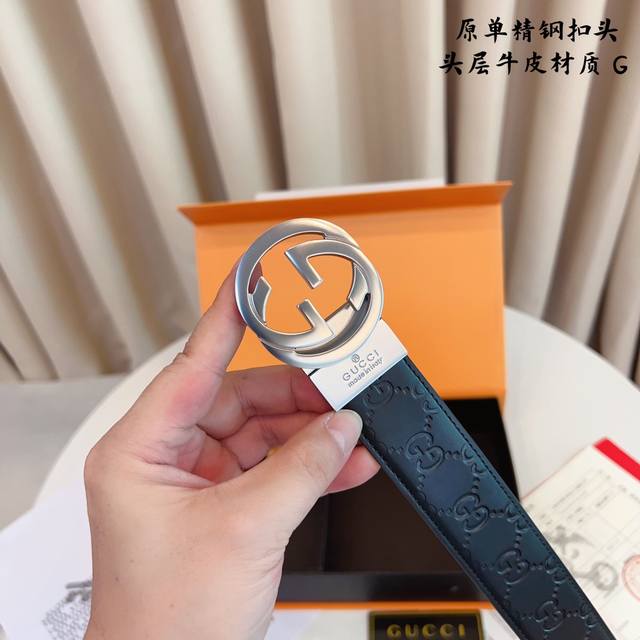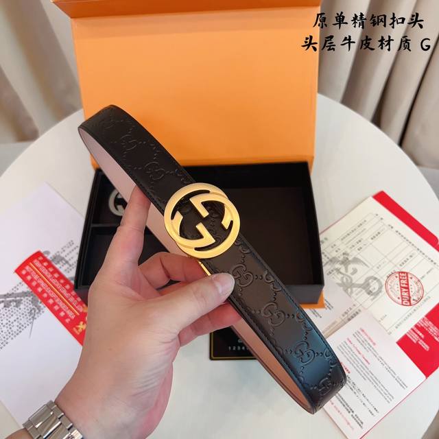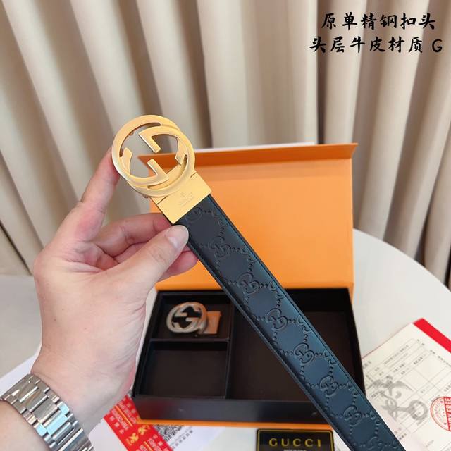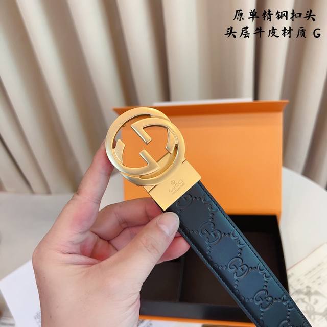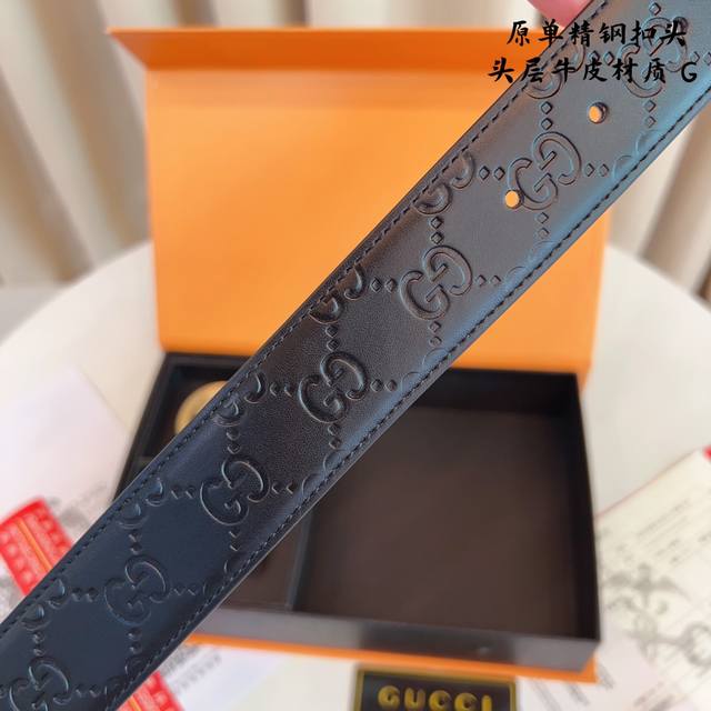 / ①带①扣 ①带②扣 原单钢扣版古奇g家 打孔 正版开模 此款腰带双面采用原厂牛皮带身,精密电镀标志性纯钢搭扣 对版专柜。3.5Cm 如需木盒40