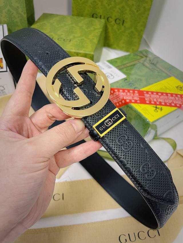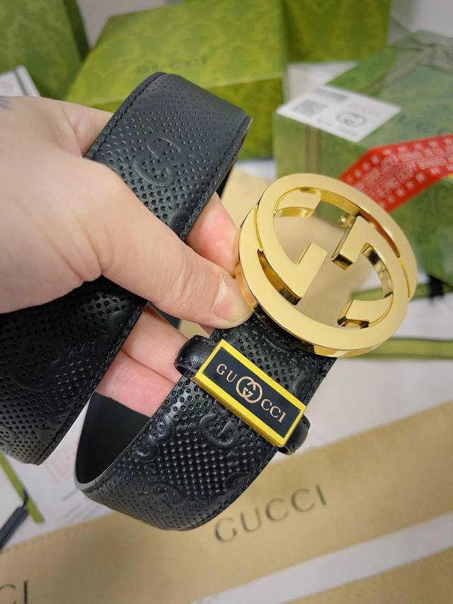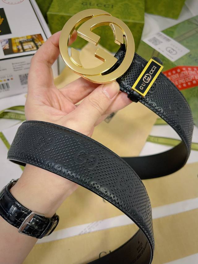 原版品质滑道 品牌:古奇G家 男款 颜色:黑 扣头:金 银 扣头:原版精品纯铜五金扣头 带身:原版牛皮 尺寸:宽约:3.8Cm...