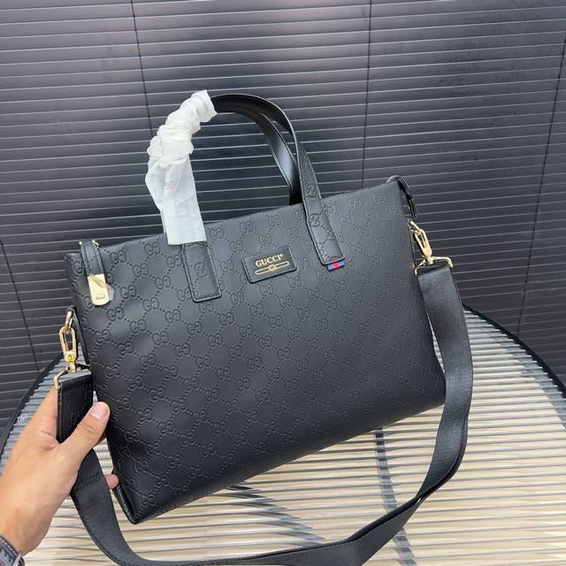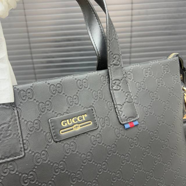 / Gucci 古奇 牛皮男包公文包 手提包 电脑包 采用精湛镶嵌细工 经典百搭 实物拍摄 原厂原版面料 28 X 38 Cm。