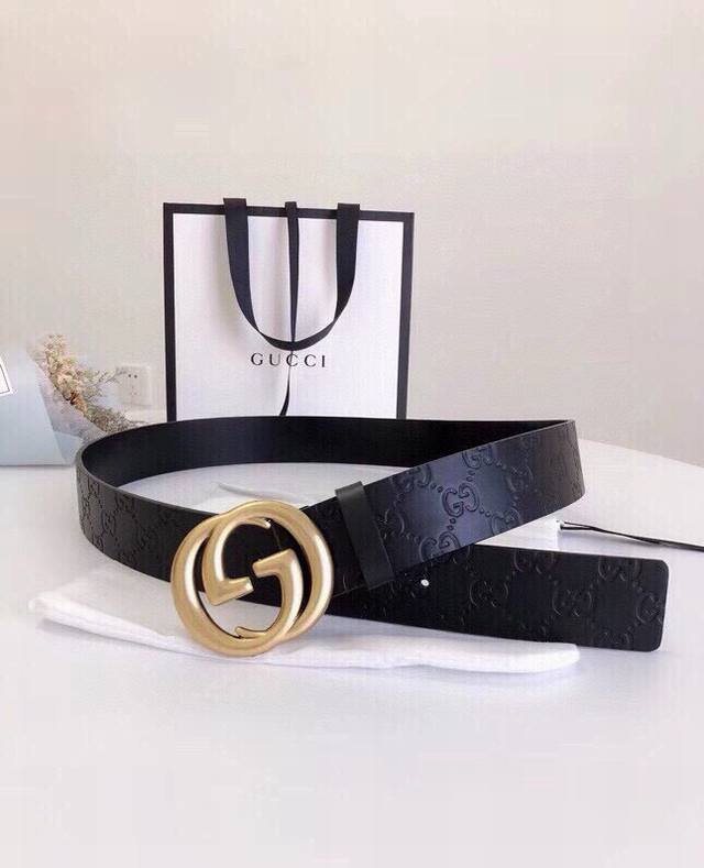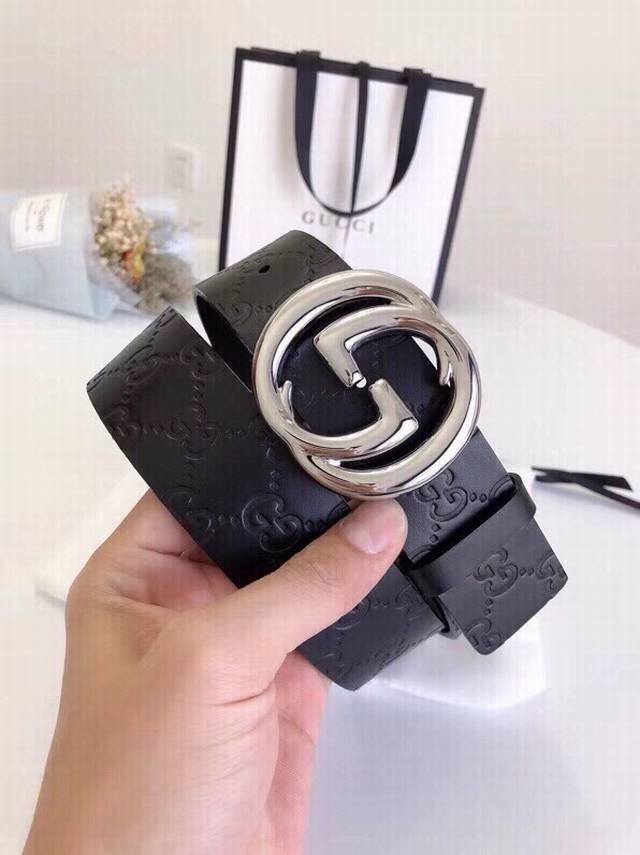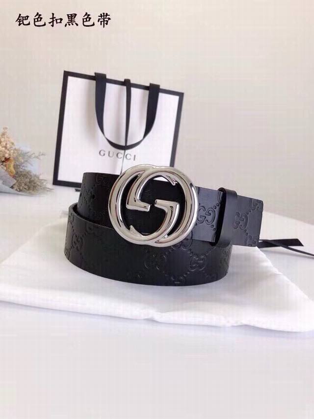 原版品质滑道 品牌:古奇G家 男款 颜色:黑 扣头:金 银 黑 扣头:原版精品纯铜五金扣头 带身:原版牛皮 尺寸:宽约:3.8Cm...