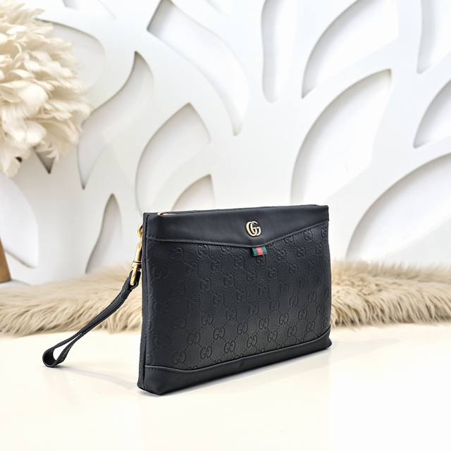 gucci-古奇最新款男士手包采用进口小牛皮 皮质柔软 手感超赞 做工精致 高贵五金 细节完美 时尚休闲百搭 质量与质感都能衬托出你独特的品味尺寸 28.18.3Cm