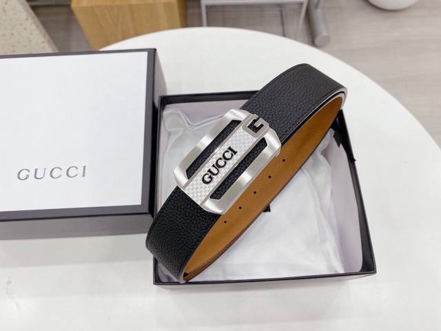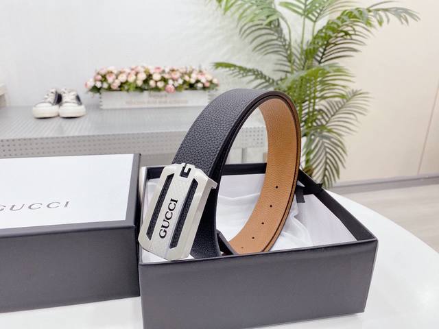 古奇 Gucci奢侈品 品牌 配双面带身款 3.8Cm专柜同款高档腰带 .带身采用古奇专柜最新元素大气有光泽度100%进口牛皮扣头采用纯钢材质结构持久耐用永不退色显档次有品味。