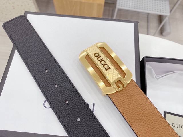 / 古奇 Gucci奢侈品 品牌 配双面带身款 3.8Cm专柜同款高档腰带 .带身采用古奇专柜最新元素大气有光泽度100%进口牛皮扣头采用纯钢材质结构持久耐用永不退