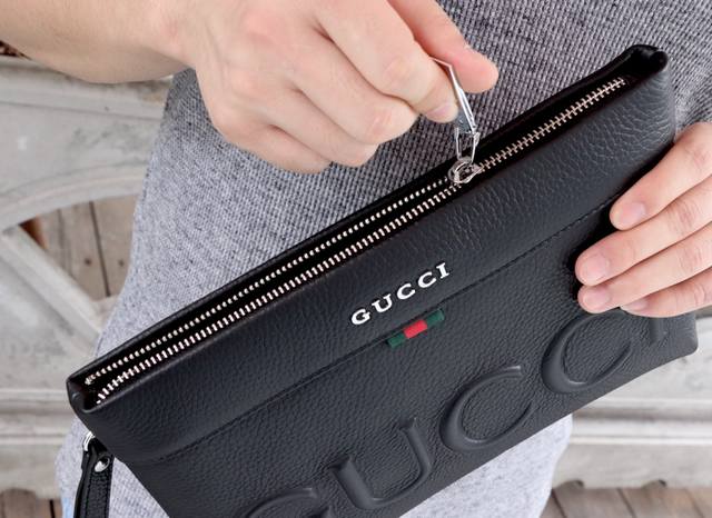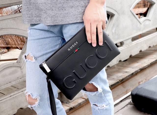 Guccl 新款男士短款钱包!专柜同步,黑色皮革,搭配pvc面料 丝印最新蜜蜂标志 油边做工精细 ,简单大方,时尚霸气, 型号:...