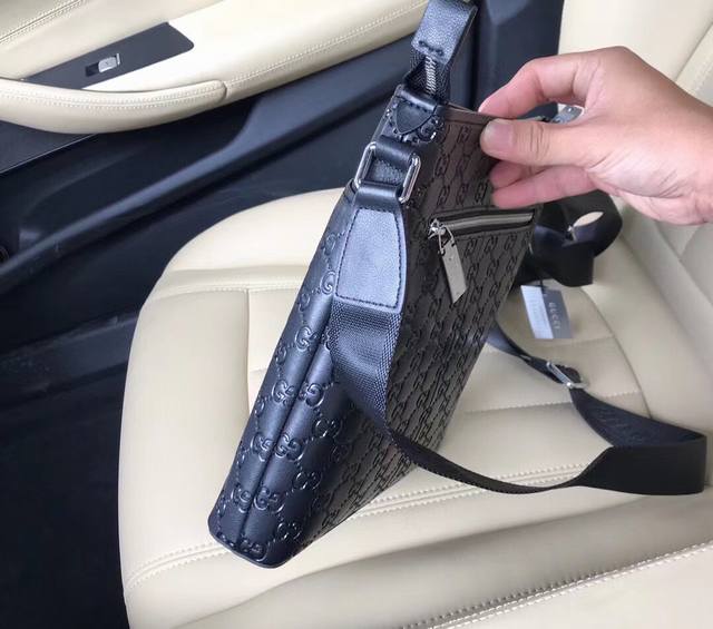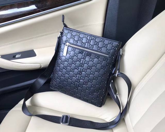 型号:33013-2~斜挎包黑色 古奇 Gucci 男士休闲系列挺阔流畅大方的楦型设计,以精湛缝线勾勒休闲的雅致情怀、描写男人自信的轮廓!看似简约的一款、实际做工相当复杂、[跳跳][跳跳][跳跳]非常简单经典。规格:24X27X6Cm