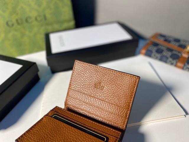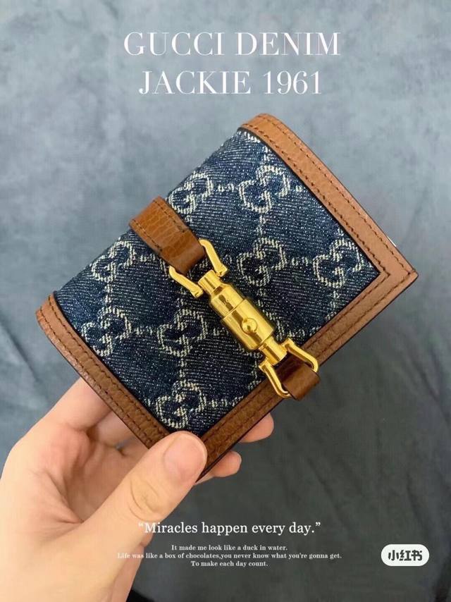 Guccl 645536颜色 棕色尺寸 11.5*8.5*3Jackie1961系列推出小巧高贵的全新卡包造型。金色调推入式锁扣,经典双G字母交织图案帆布令整款