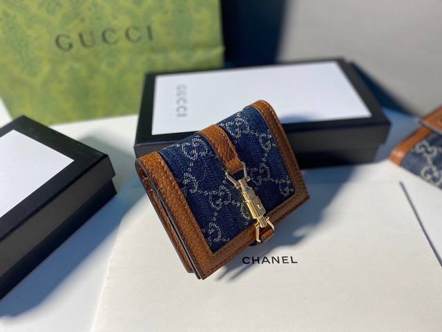 Guccl 645536颜色 棕色尺寸 11.5*8.5*3Jackie1961系列推出小巧高贵的全新卡包造型。金色调推入式锁扣,经典双G字母交织图案帆布令整款设计散发出典雅隽永的意味!