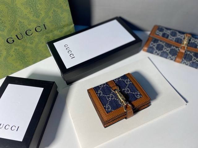 / Guccl 645536颜色 棕色尺寸 11.5*8.5*3Jackie1961系列推出小巧高贵的全新卡包造型。金色调推入式锁扣,经典双G字母交织图案帆布令整款